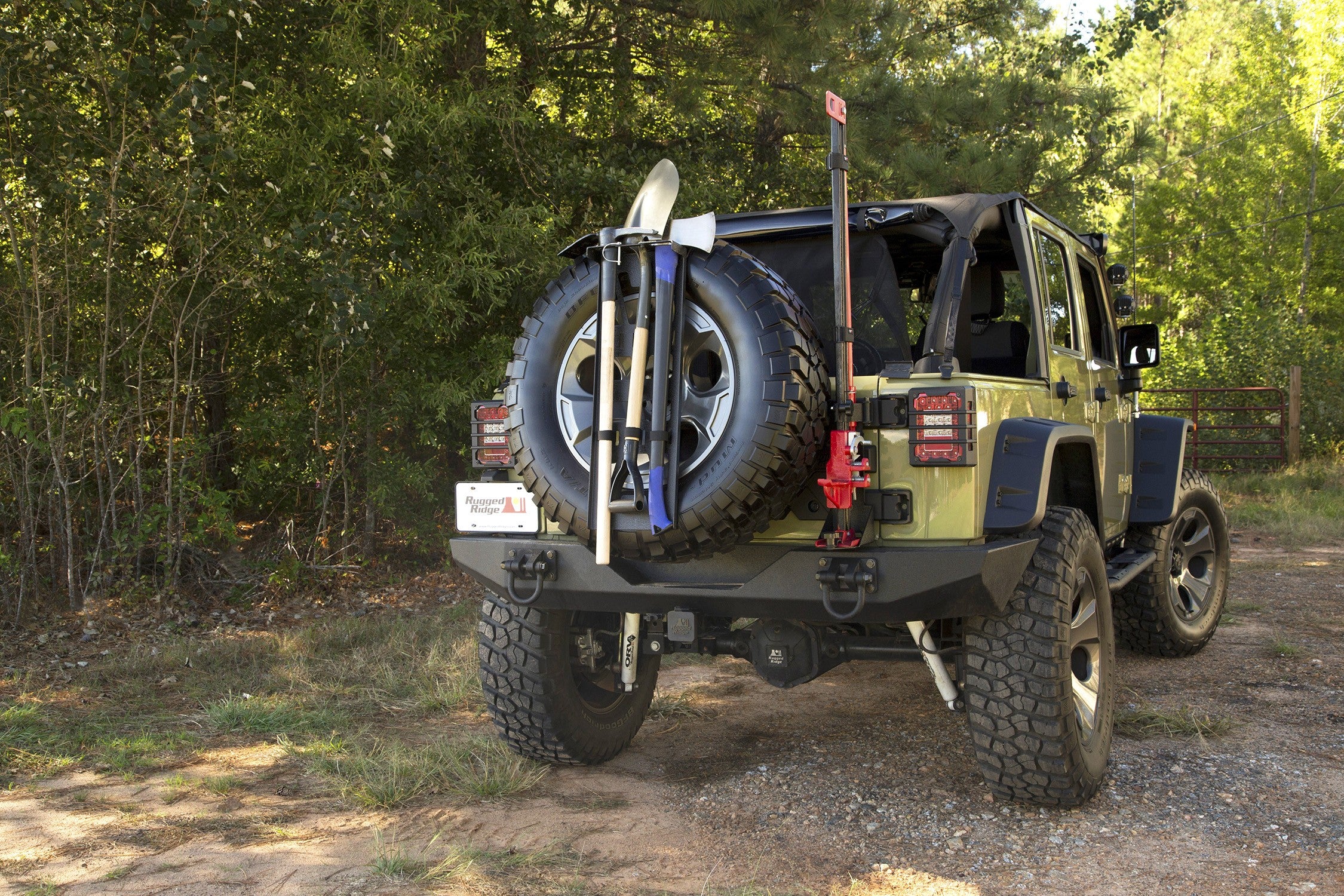 The Rugged Ridge Spare Tire Tool Rack System is an excellent way to equip your Jeep with the tools to survive any off-road excursion. Each tool rack is built from high-strength powder coated steel plate and, with a three-groove rack, will house a variety of tools and implements including axes, shovels, picks, saws, etc. Each tool attaches securely in place with the included retention straps for a quiet, rattle-free ride. The Spare Tire Tool Rack System features a rugged spare tire mounting plate that works with a wide variety of bolt circles and offsets, making it virtually universal for any vehicle with an externally mounted spare.